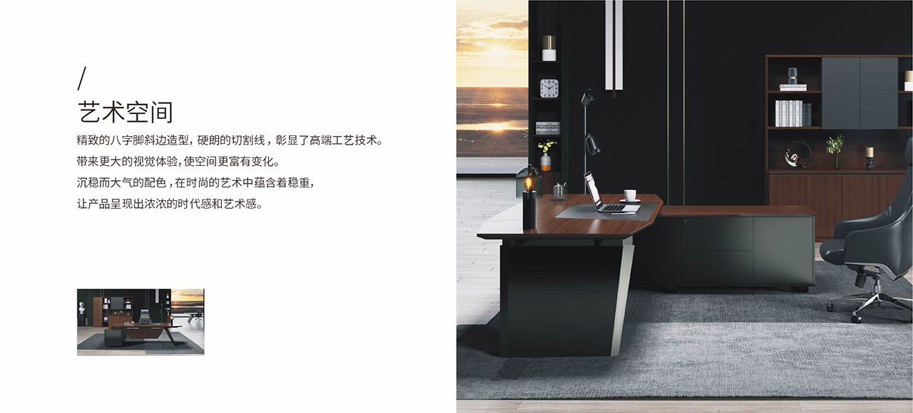 继承东方简约的优雅,汲取意大利设计之精髓,突破传统的设计思维,展现中西合壁的精致,浪漫与理性交织,恢弘的八字斜边造型搭配稳重的配色,宛如一件浑然天成的艺术品,流露出尊贵悠闲的艺术空间风范。