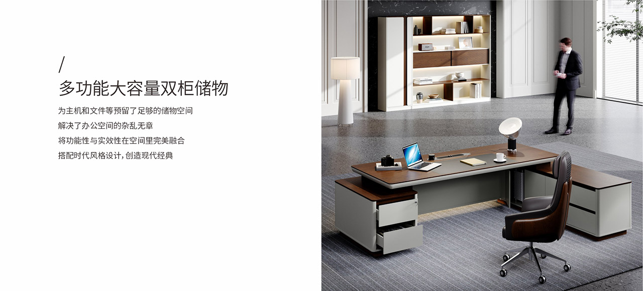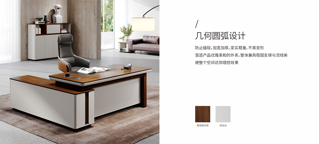 的线条配合副柜边角圆弧设计,外形动感又不失优雅,呈现当代空间设计趋势,与时俱进,独具魅力。探索美学办公,是您赏心悦目的同时亦能从中感受时代气息。