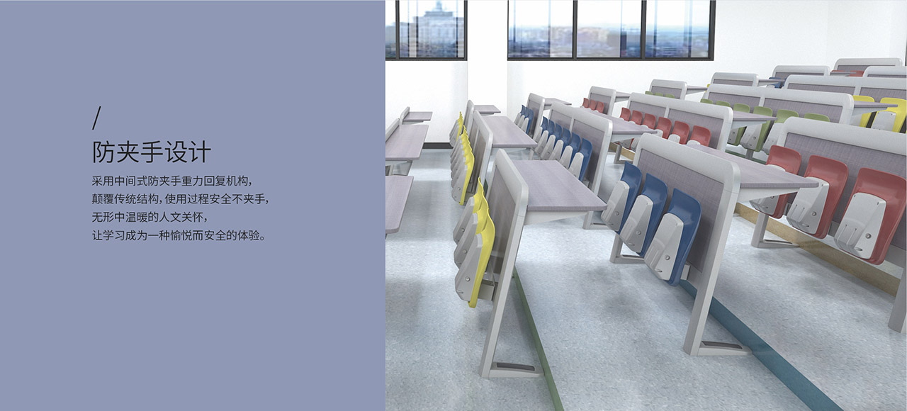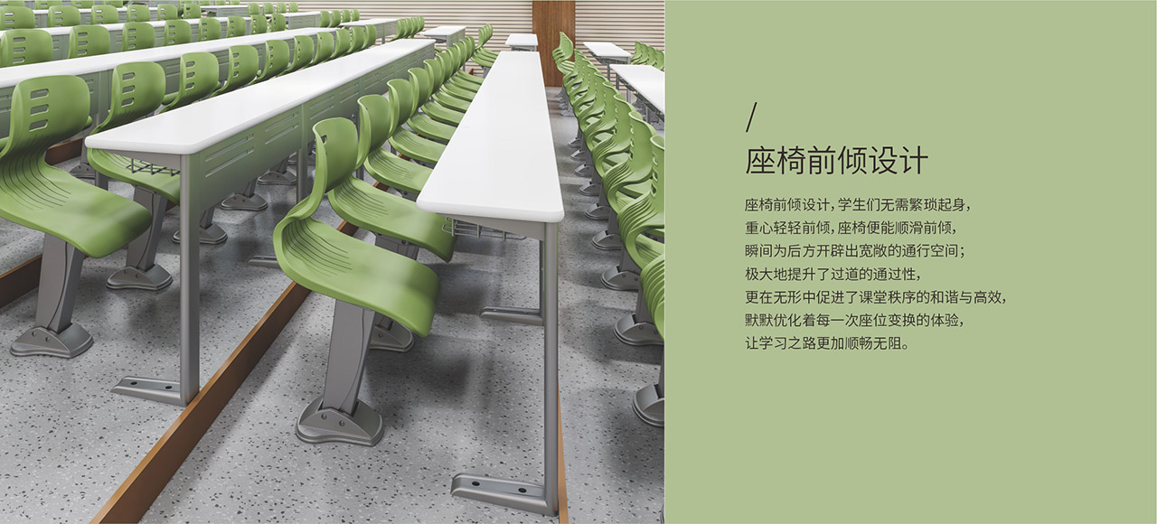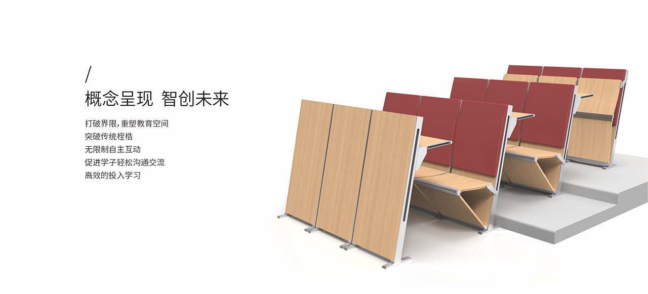 专为高校及培训机构阶梯教室设计的模块化课桌椅系统,融合建筑美学与人体工学,通过金属+木质材质组合实现科技感与实用性的平衡。适用于大型教室,支持平地/阶梯场景自由切换,满足多媒体教学、学术报告等多样化需求。