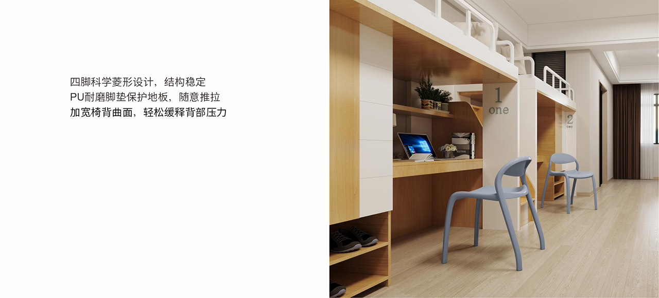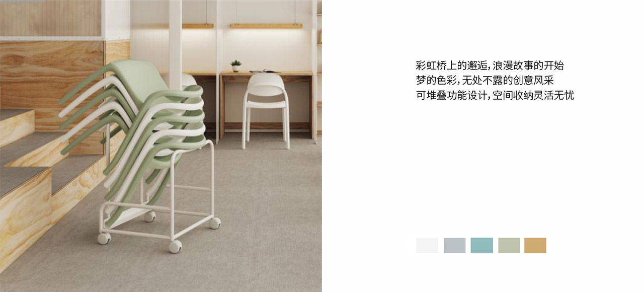 椅背灵感源于彩虹桥弧线,多彩缤纷搭配,宛如重现横跨的彩虹。